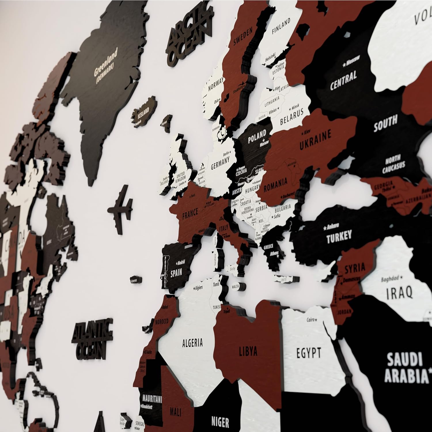 - 3D MULTILAYERED WOODEN - This world map will be the center of your homes, offices for many, many years to come! Great decor alternative for your living rooms, dining rooms, offices, kid's rooms.